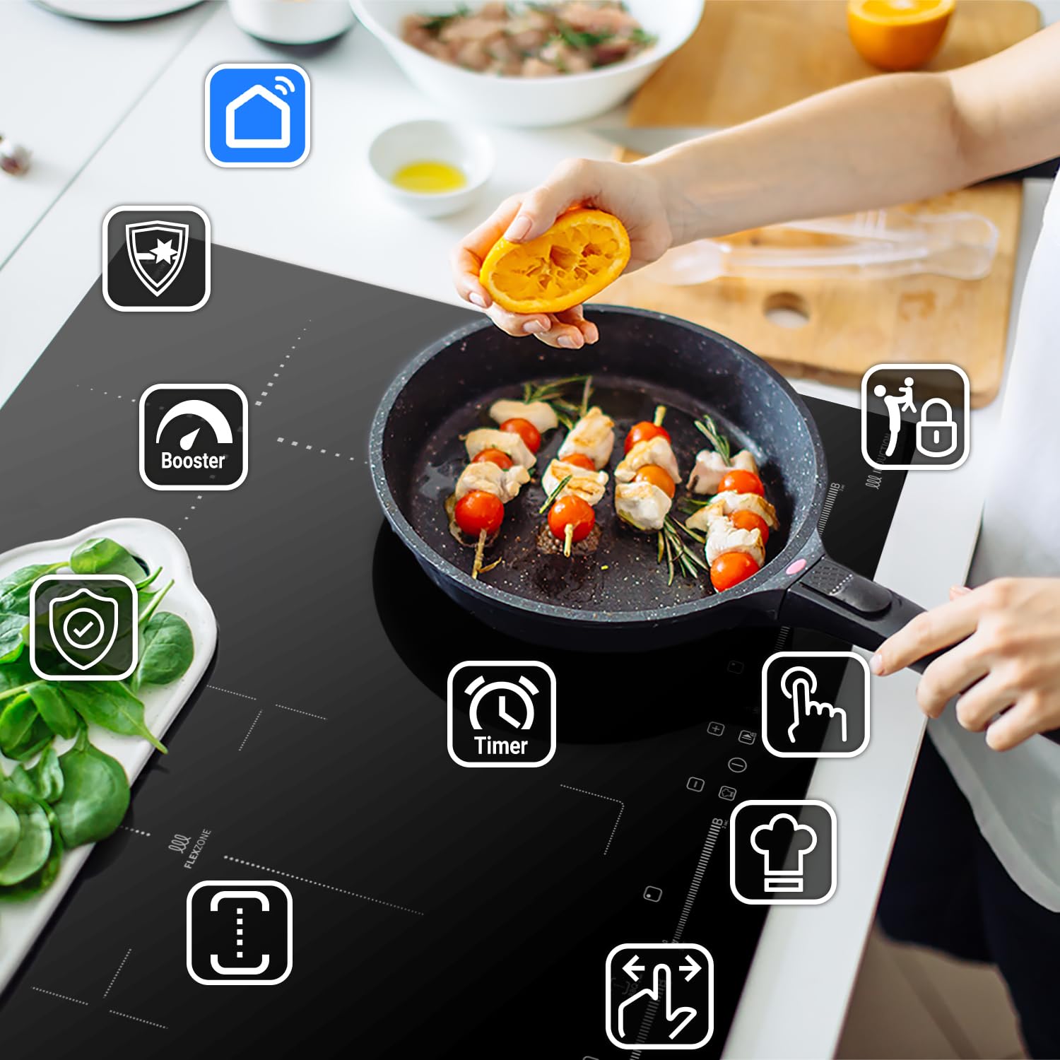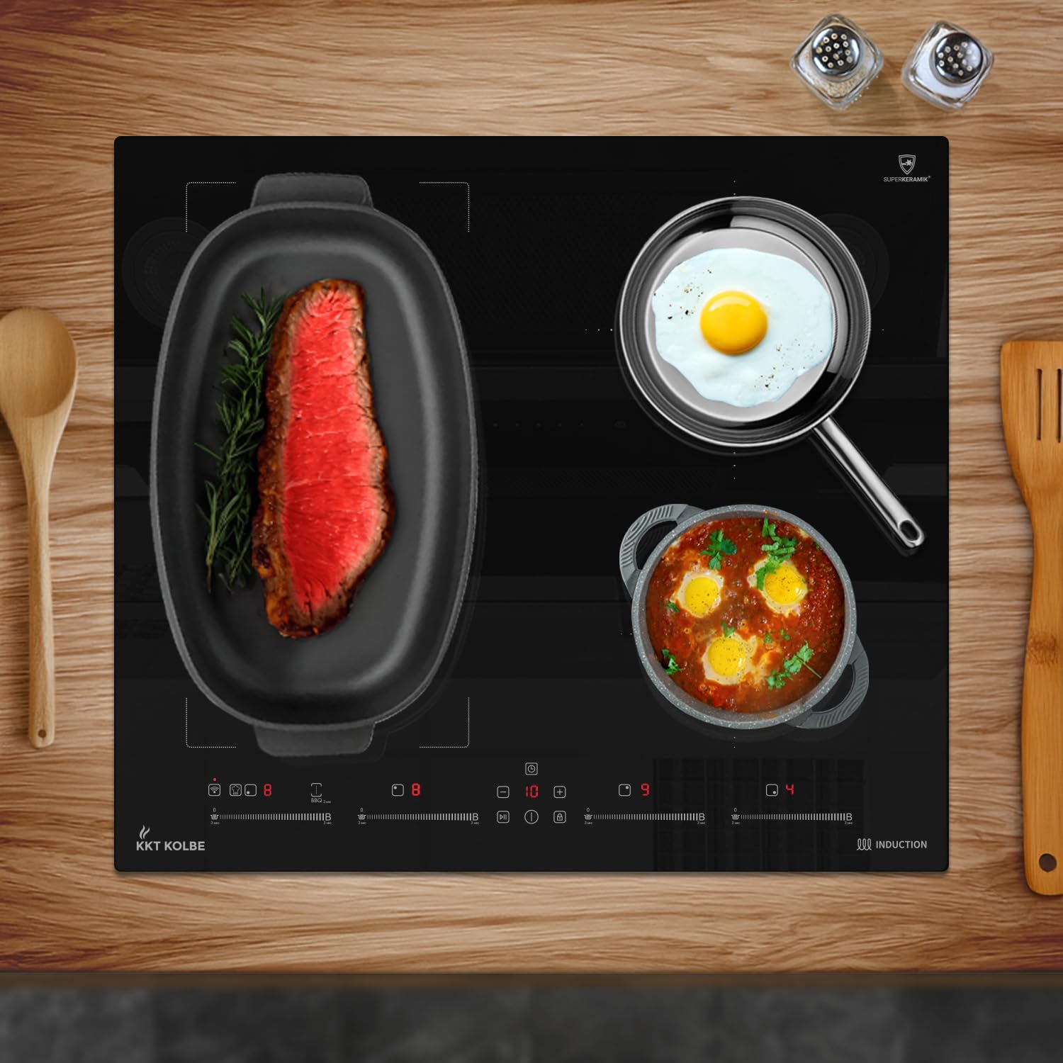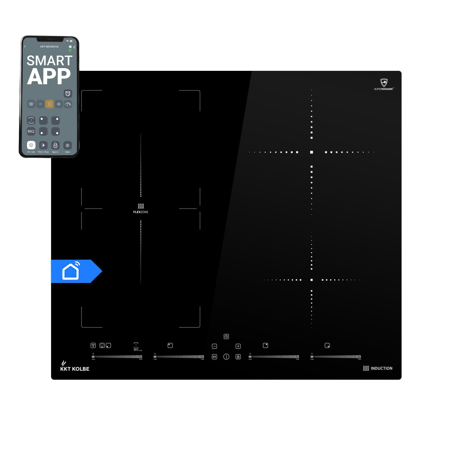 Induktionskochfeld 60 cm | Autark | 7,4 kW | 4 Zonen | 9 Stufen | Rahmenlos | Schnellaufheizung | BBQ-Funktion | Touch Slider | Smart WiFi App WLAN | IND5901HC
