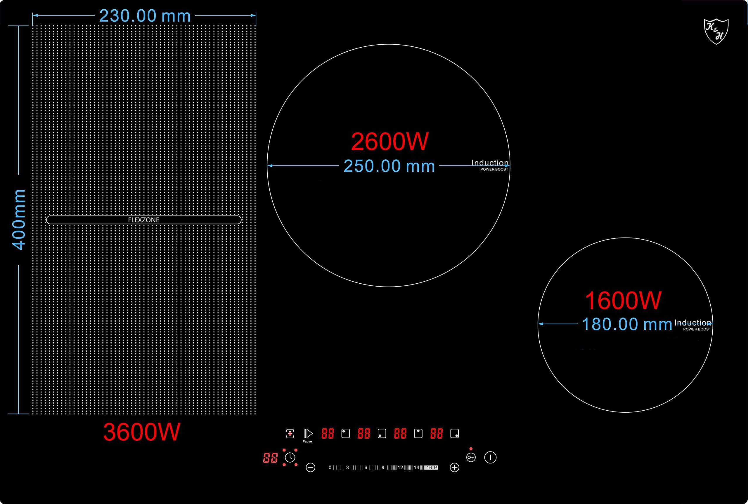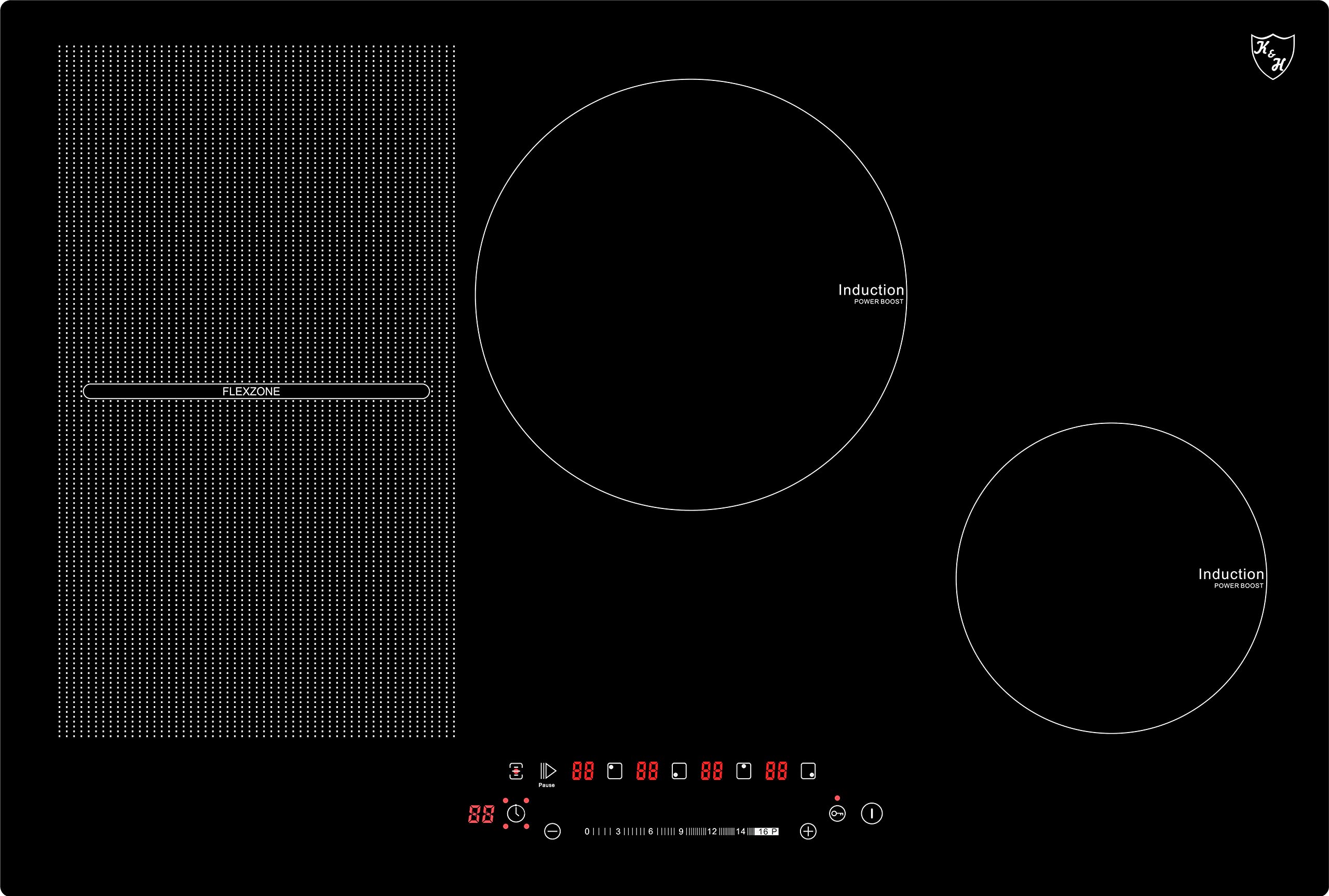 K&H Induktionskochfeld 77-IN-6800FLX [4 ZONEN] - Induktionskochplatte - Induktionsherdplatte Sensor Touch Steuerung - Kochfeld Induktion - Autark zum Einbau - 77CM - 6800 Watt - 17 Leistungsstufen