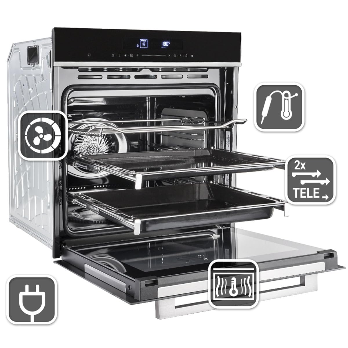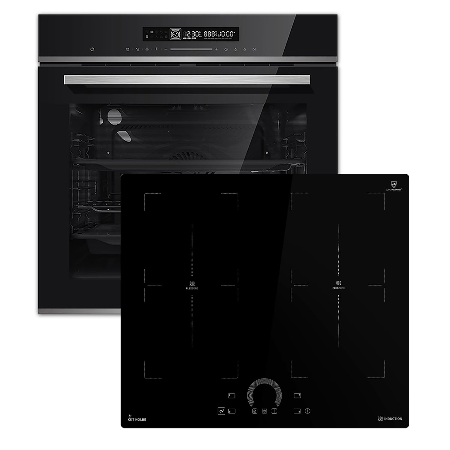 KKT KOLBE | Autarkes Herdset | 60cm Einbaubackofen EB8017ED | 59cm Induktionskochfeld IH85904FZ | Katalyse | Pizzafunktion | Grill | Umluft | Heißluft | Timer | SET8017IH594FZ