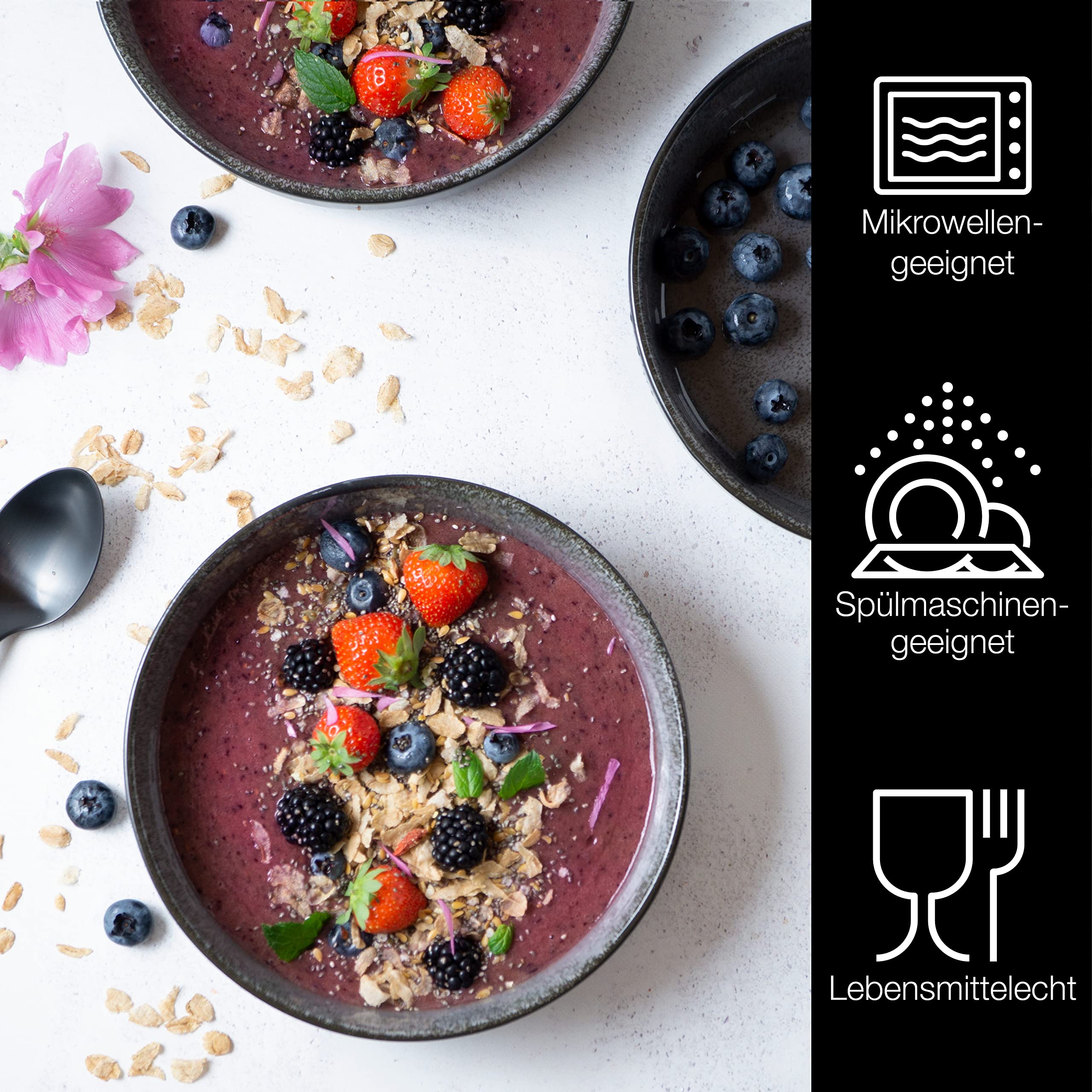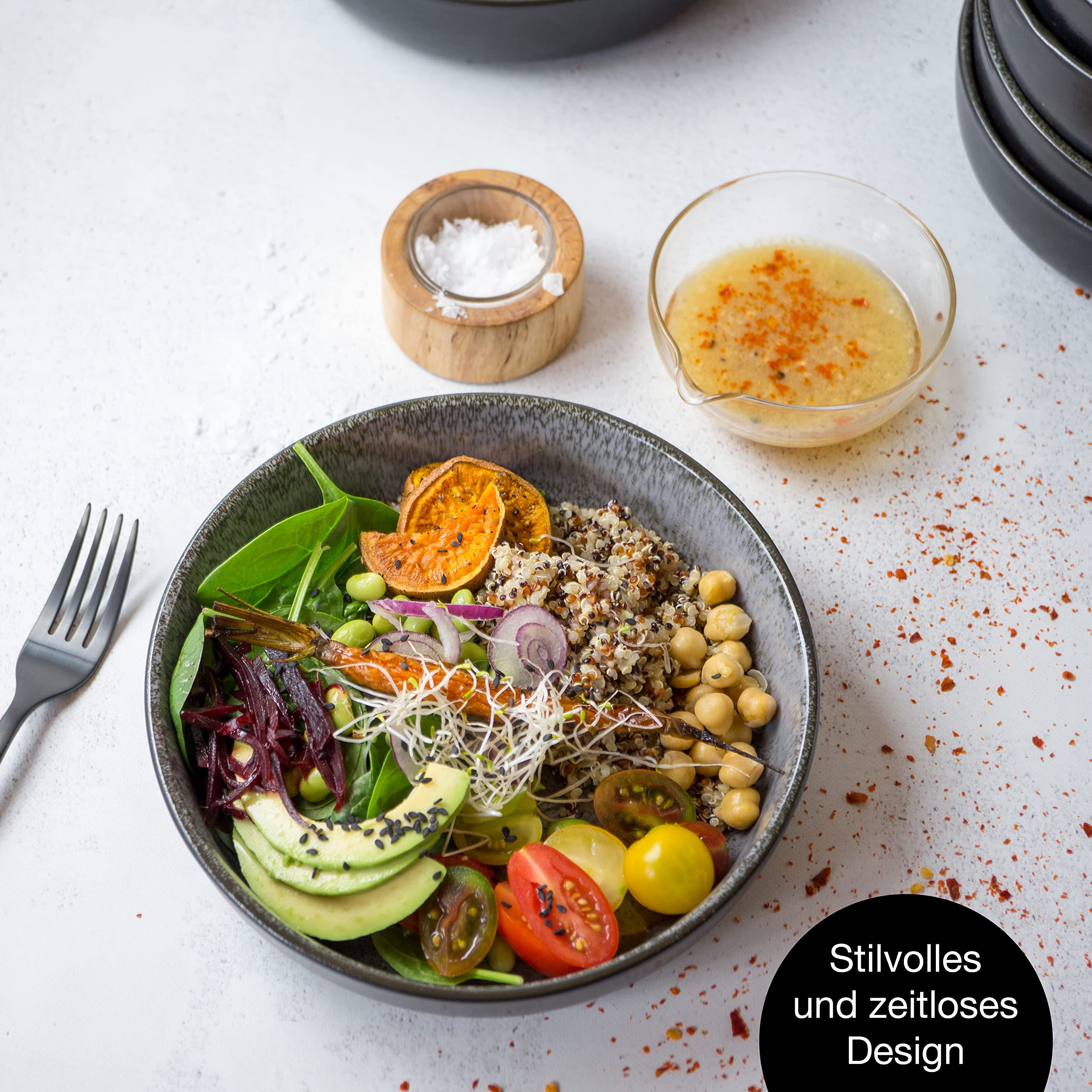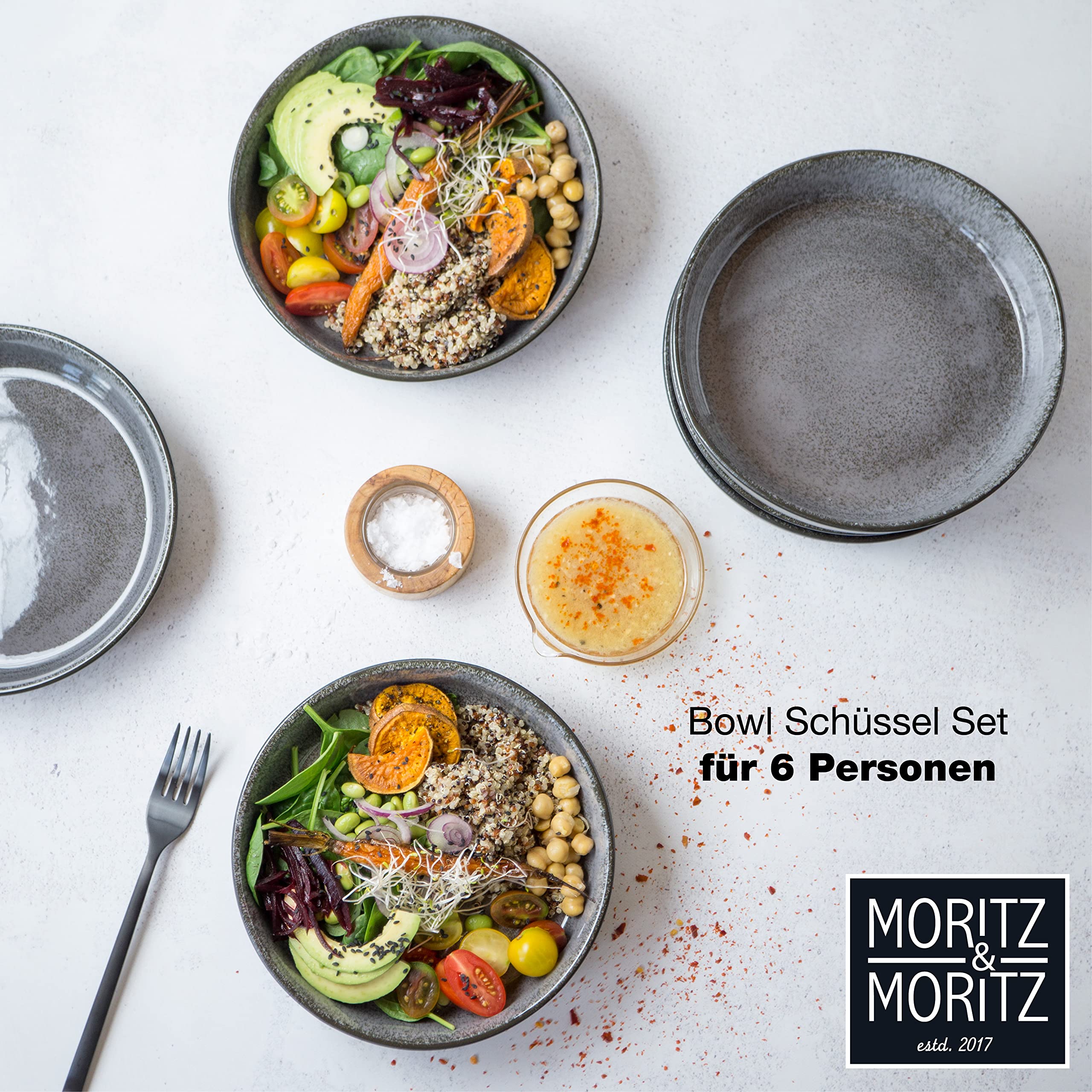 Moritz & Moritz 6x Smoothie Bowl Schüssel aus Porzellan Anthrazit – Buddha Bowl Schüssel für 6 Personen – Als Suppenschüssel, Salatschalen und Müslischalen Set